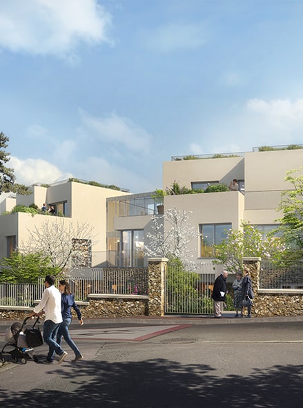 À quelques minutes à pied du centre-ville, le Clos des Vignes se situe au calme d’un quartier résidentiel, essentiellement constitué de maisons ceintes de vastes jardins et d’une résidence services senior qui fait intégralement partie du projet.