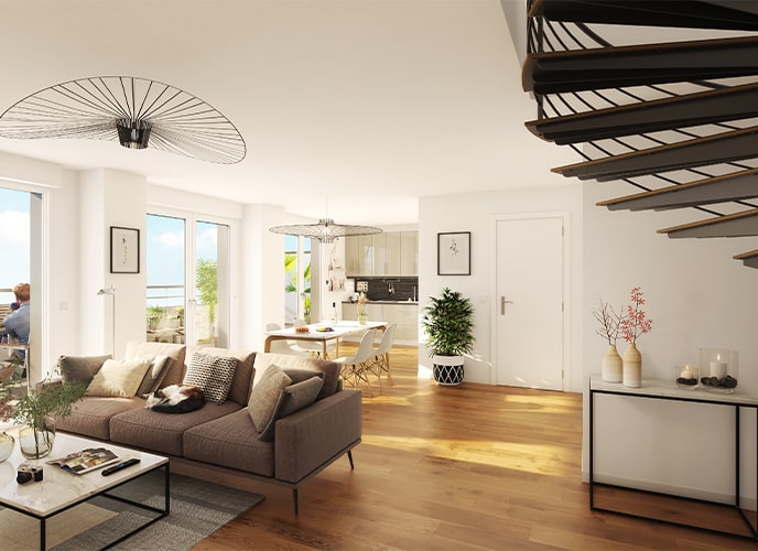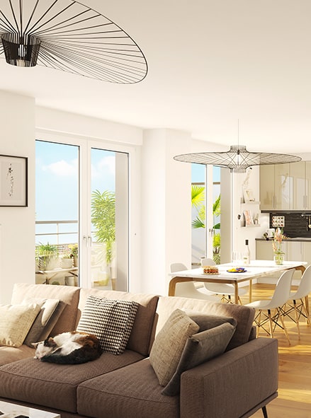 (1) Exemple pour un 2 pièces lot A01 de 48.1 m² au prix de 349 000€ TVA 20% - dans la limite des stocks disponibles.